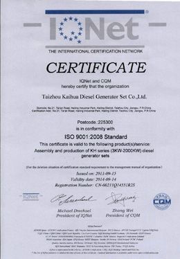 泰州市凱華柴油發(fā)電機組有限公司創(chuàng)建于2003年,是一家集柴油發(fā)電機組燃氣發(fā)電機組的研發(fā)、生產(chǎn)、銷售為一體的高新技術(shù)民營企業(yè),公司座落于“漢唐古郡,淮海名區(qū)”,具有“鳳凰城”美稱的祥泰之州——江蘇省泰州市,地處中國經(jīng)濟最發(fā)達的長三角經(jīng)濟圈,水陸空立體交通,地理位置十分優(yōu)越。公司目前注冊資本金11800萬元人民幣,生產(chǎn)基地占地六十畝,現(xiàn)有各類高素質(zhì)員工一百多名,專業(yè)技術(shù)人員達46人,其中高級技術(shù)人員16人,年銷售額近6億元。 公司主營產(chǎn)品:3~3000KW陸用柴油發(fā)電機組,15~600KW移動拖車電站,12~1000KW船用應(yīng)急柴油發(fā)電機組,各種靜音型、中高壓、多機并聯(lián)、燃氣等特種機組以及進口系列柴油發(fā)電機組,可滿足不同客戶的一切電力需求,還可滿足用戶不同電壓、不同頻率的要求。凱華公司是康明斯品牌的授權(quán)代理商,專業(yè)生產(chǎn)供應(yīng)康明斯柴油發(fā)電機組。